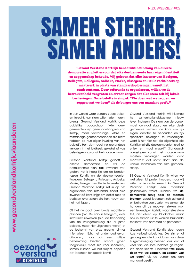 Een brief aan de burgers van Kortrijk: blijf verbonden en geïnformeerd met Gezond Verstand Kortrijk.