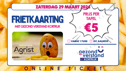 Gezond Verstand Kortrijk organiseert een gezellige Frietkaarting op zat. 29 maart vanaf 17u00 en zon. 30 maart vanaf 11u00 in OC Aalbeke. Kom langs voor een sfeervolle kaartavond of -middag en beleef plezier met vrienden en familie. Naast het kaarten is er ook een tombola waarbij iedereen wint, dus niemand gaat met lege handen naar huis. Voor de lekkerbekken is er een uitgebreid aanbod aan eten en drank, zodat je tussendoor kan genieten van een hapje en een drankje.